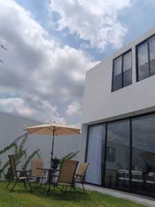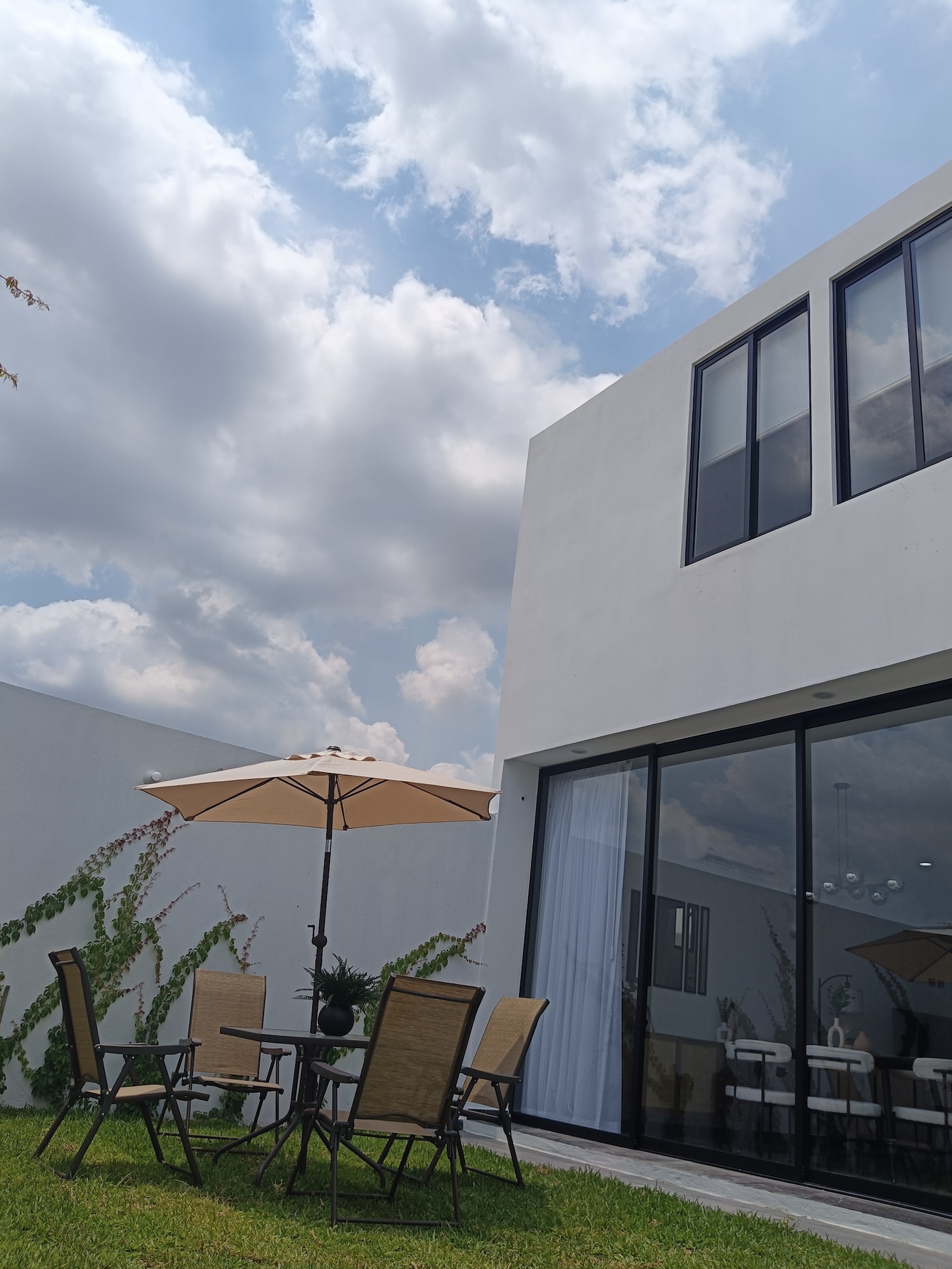 - Área de lavado techada e independiente, jardín privado con pasto, cochera techada para 2 vehículos, escalera con herrería de diseño y pasamanos.